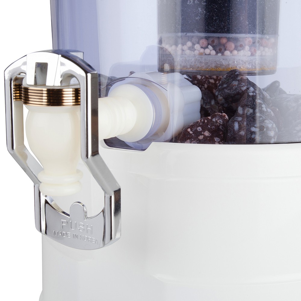 Filtert diepgaand middels keramisch filter en meerstappen filtercartridge. - Basisch (alkalisch) of pH neutraal